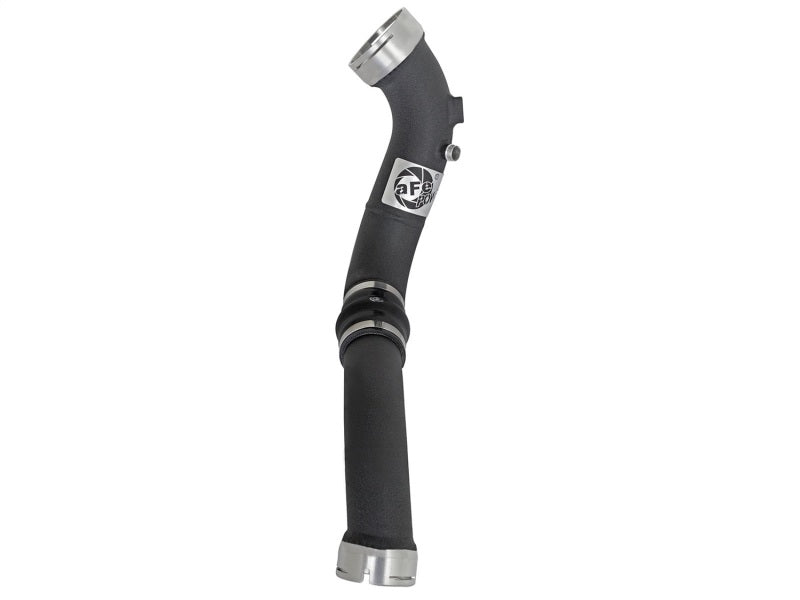 Features: •+13 HP/+13 lbs. x ft. Torque max gains • Outflows factory intercooler tube by 18% • Retains OE style throttle body and intercooler quick connect made from 6061-T6 Billet Aluminum • 2-1/2in. to 3in. Cold-Side mandrel-bent aluminum tubing • Powder-coated wrinkle-black for heat resistance • 1/8in. NPT ports; are provided for connecting pressure sensors or water methanol injection • 5-Ply Polyester Reinforced Silicone coupling for strength • Includes premium stainless steel clamps for a secure fit • Works with OE intercooler • Includes hardware for a hassle-free installation P erfect Fit: Includes stainless steel clamps for a leak-free seal and heavy-duty 5-Ply polyester reinforced silicone hump coupling for strength. Mandrel-bent Tubing: Constructed of 2-1/2in. to 3in. mandrel-bent aluminum tubing then powder-coated wrinkle-black for heat and corrosion resistance. The sm ooth transition mandrel bends decrease turbulence which increases horsepower and torque while lowering EGT s. The high-temp wrinkle-black powder-coating insulates the tube from engine heat and protects the tube from corrosion. Two 1/8in. NPT ports are provided for sensors or water-methanol injection. aFe Badging: Unique aluminum laser-cut aFe Power logo plate is welded-on for an aggressive style. Note: This system is not CARB exempt at this time and is not legal for sale in California or use on vehicles registered with the California Department of Motor Vehicle.