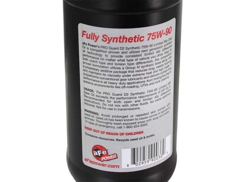 aFe Power's new rear differential cover brings performance engineering to the protection of your axle's differential. This differential cover is constructed out of durable sand-cast A356-T6 aluminum with reinforcing ribs for maximum strength. This cover comes with mounting hardware for a hassle-free installation. The differential covers includes an oil level sight glass and deep reach magnetic fill plug for maximum protection. This cover is finished in wrinkle-black powder-coating with machined fins for a distinctive look. 2 Quart Lube Capacity: This cover has about a 2 quart lube capacity at the factory fill level, factory cover holds about 1.5 quarts. Built-in External Fins: Built-in external fins transfer heat from the fluid to the outside air for maximum cooling. Magnetic Drain/Fill Plug: This system incorporates a magnetic drain and fill plug that captures loose particles for maximum rear-end protection. Oil Level Sight Glass: Large oil level sight glass with 1/8'' NPT calibration plug set to the factory fluid level to eliminate overfilling. Group IV synthetic base: This competition proven formulation utilizes a group IV synthetic base along with a proprietary additive package that reduces drag, resist foaming and maintains its viscosity under extreme heat and high loads. Usage: The Pro GUARD D2 Synthetic 75W-90 limited slip gear oil exceeds the performance requirements of API GL-5 recommended for both open and limited slip applications.